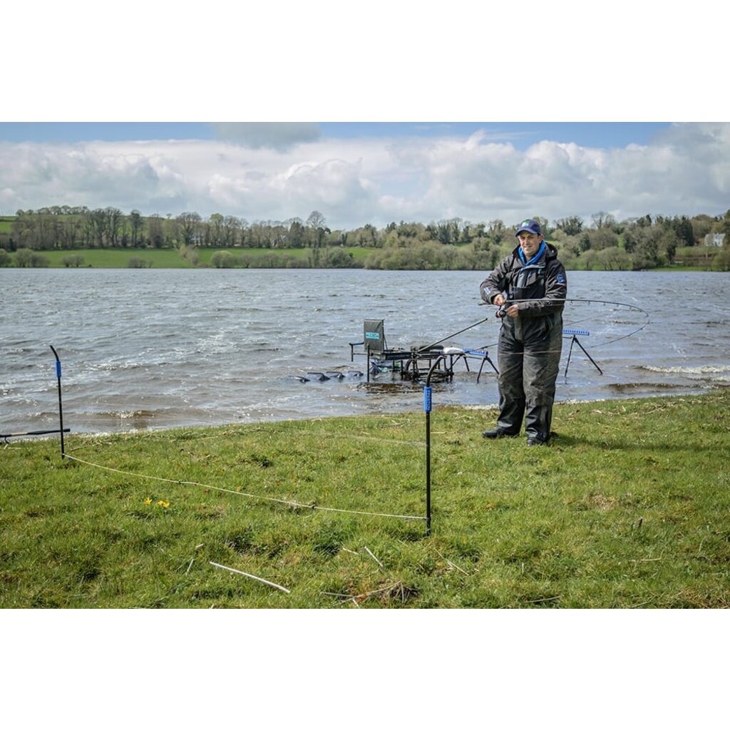 De Preston Measuring Sticks worden geleverd met een meettouw van 3 meter voor een nauwkeurige opstelling. Dankzij de twee gekleurde stelknoppen kun je eenvoudig verschillende werpafstanden markeren met één set sticks. Steek de sticks op de gewenste afstand in de grond en wikkel je lijn er het juiste aantal keren omheen. Is de gewenste afstand korter dan één volledige omwenteling, dan kun je met de stelknoppen exact bepalen waar je moet stoppen. Ideaal voor het nauwkeurig en consequent uitwerpen op meerdere afstanden.