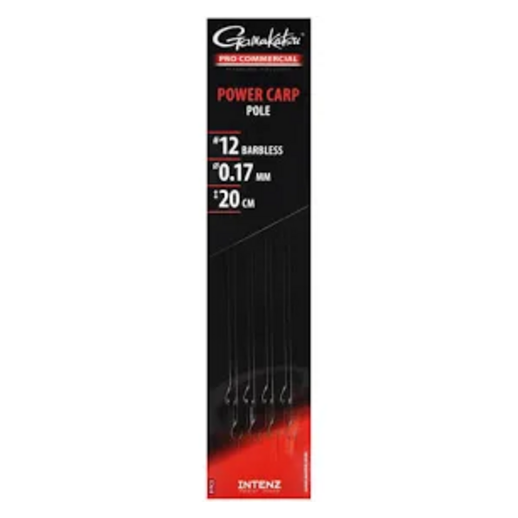 De Gamakatsu Power Carp Pole Barbless is een kant-en-klare onderlijn voor de vaste stok, speciaal voor het vissen op karper op commercials.