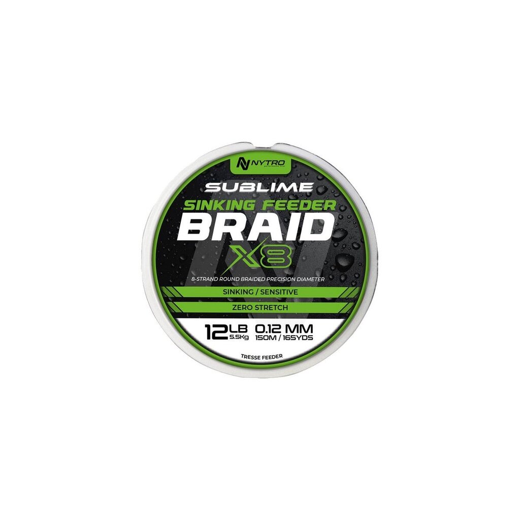 De Nytro Sublime Sinking Feeder Braid X8 is een snel zinkende, ronde 8-strengs gevlochten lijn. Ontworpen voor strak contact, maximale beetregistratie en controle bij feedervissen, ook op afstand.